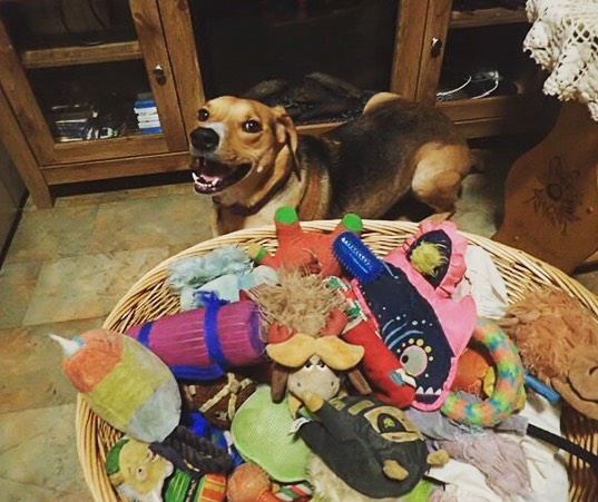 Yesterday, Wed March 18, 2020, while I was using the "dog shaver" to see about Beignet's loose dog hair, she was more hyper than usual and wouldn't keep still. Long story short, she moved while I was going down her back with it, and when she moved, I slipped and got the back of one of her legs- a small cut on her leg and bleeding a little. We went inside, I got bacitracin, gauze, bandaid, and medical tape and bandaged her up. I walked away to put the stuff away and come back to find she had already chewed halfway through the tape, gauze, and bandaid.